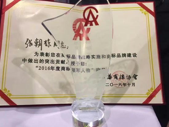 東靈通董事長張朝棟獲評(商標(biāo)服務(wù)機(jī)構(gòu)組)“2016年商標(biāo)領(lǐng)軍人物”獎。
